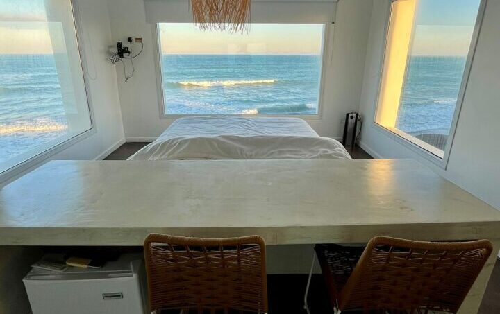 Moderna casa, reciclada a nuevo 2024, sobre la playa. Planta baja una habitación matrimonial. Baño completo. Cocina comedor living parrilla todo integrado y con plena vista al mar. Patio, deck al mar. Espacio techado de auto. Planta alta, tres habitaciones: 1 matrimonial en suite con jacuzzi y salida a terraza frente al mar, 2 matrimonial y 3 con camas individuales y baño completo. Terraza exterior plena vista al mar.